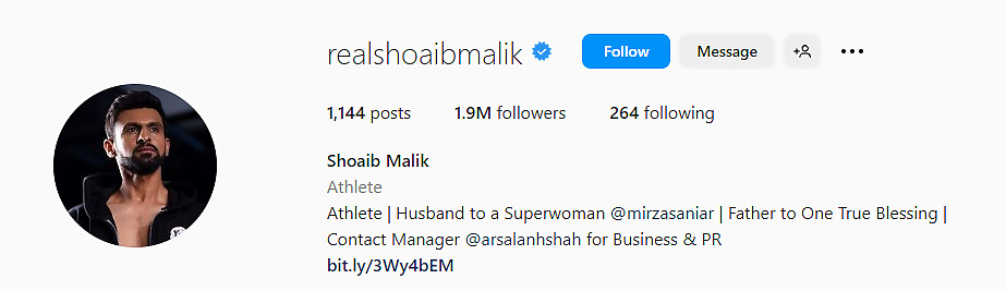 Amid all the speculations around their divorce, Shoaib Malik’s Instagram bio has grabbed our attention. While his recent comment did suggest that all was not well between the couple, his Insta bio has a different story to tell. “Athlete, Husband to a Superwoman @mirzasaniar, Father to One True Blessing,” reads the bio of Shoaib, who tied the knot with Sania in April 2010, and shares a son together.