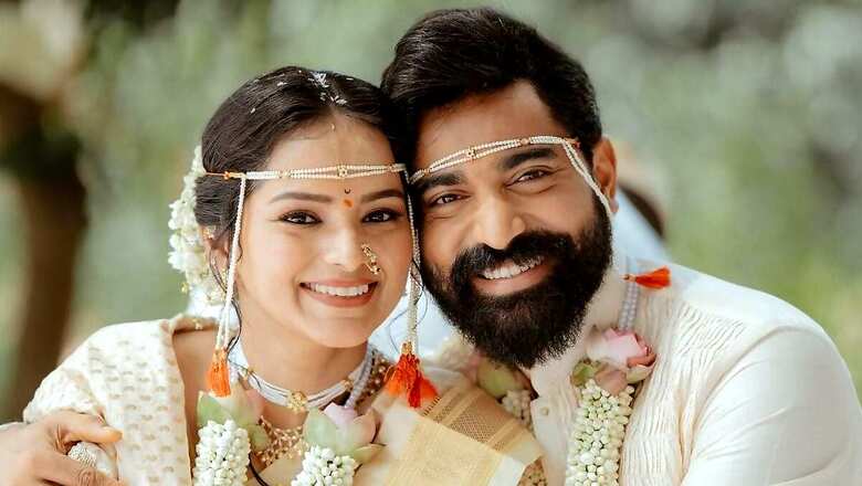 The couple took to their official Instagram handles, in a joint post to share the breathtaking photos of themselves from the function. Titeeksha wore a beautiful golden and off-white hued paithani saree, which was paired with a gajra on her updo, along with traditional Indian gold jewellery. Her now-husband, Siddharth wore a golden-coloured dhoti and off-white kurta, matching the outfit with his bride. The couple sported a mundavalya on each of their heads, which is an important part of Marathi wedding attires. The photos show the couple looking madly in love, as they complete their wedding vows.