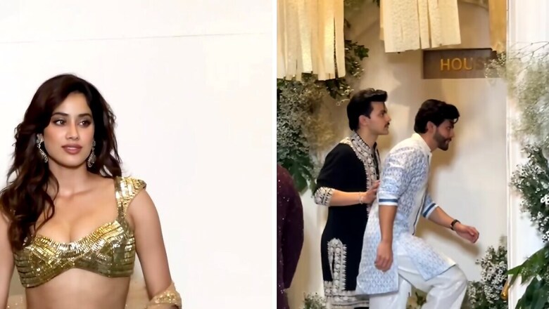 For the occasion, Janhvi donned a gold lehenga designed by Manish Malhotra himself, adorned with the designer’s signature sequin embellishments in abstract patterns. Her choli featured a plunging neckline, a backless design, a mini-cropped hem, and a fitted bust. The lehenga was designed with a floor-grazing hem, a mid-rise waist, and a mermaid silhouette. She completed her traditional look with jhumkas, a box clutch, open locks, statement rings, and striking gold-hued makeup.