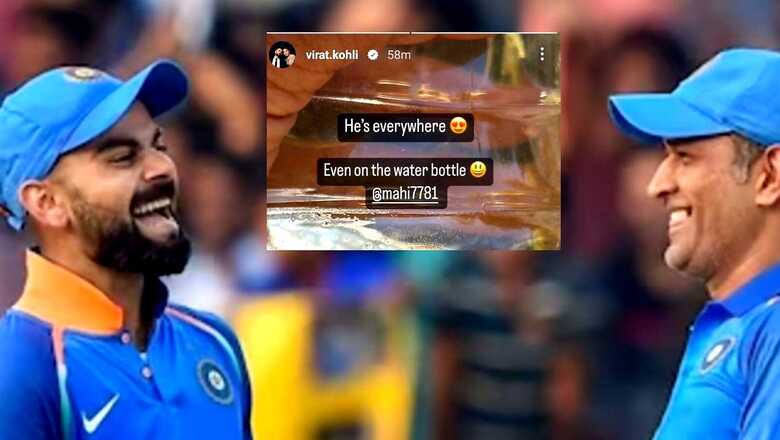 Virat Kohli has time and again spoken about the love and respect he has MS Dhoni. Both the cricketers share a great bond. Over the years, Kohli has majorly emphasised on the support he has received from Dhoni throughout his career. He even takes to social media and often tags Dhoni. Like today, Kohli took to his official Instagram handle and shared a story where he tagged Dhoni. He shared picture of a water bottle which had the image of Dhoni on the label. Kohli wrote, “He’s everywhere. Even on the water bottle.” Have a look: