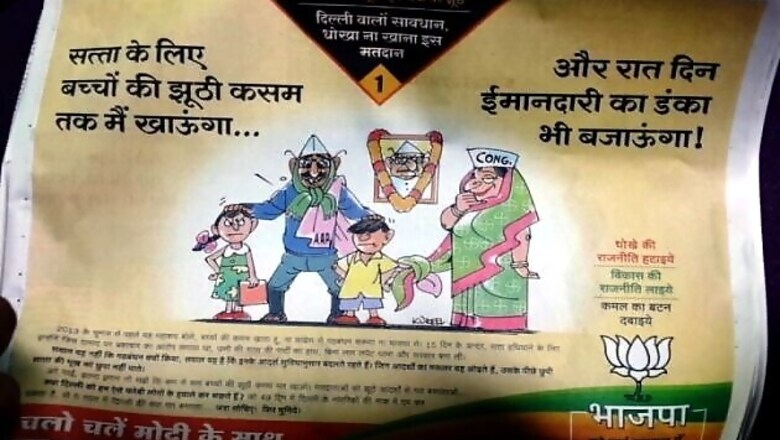 In the advertisement, BJP has also shown Kejriwal's cartoon in which he is promising not to take support from congress, but he has been shown to have done "marriage" with congress.